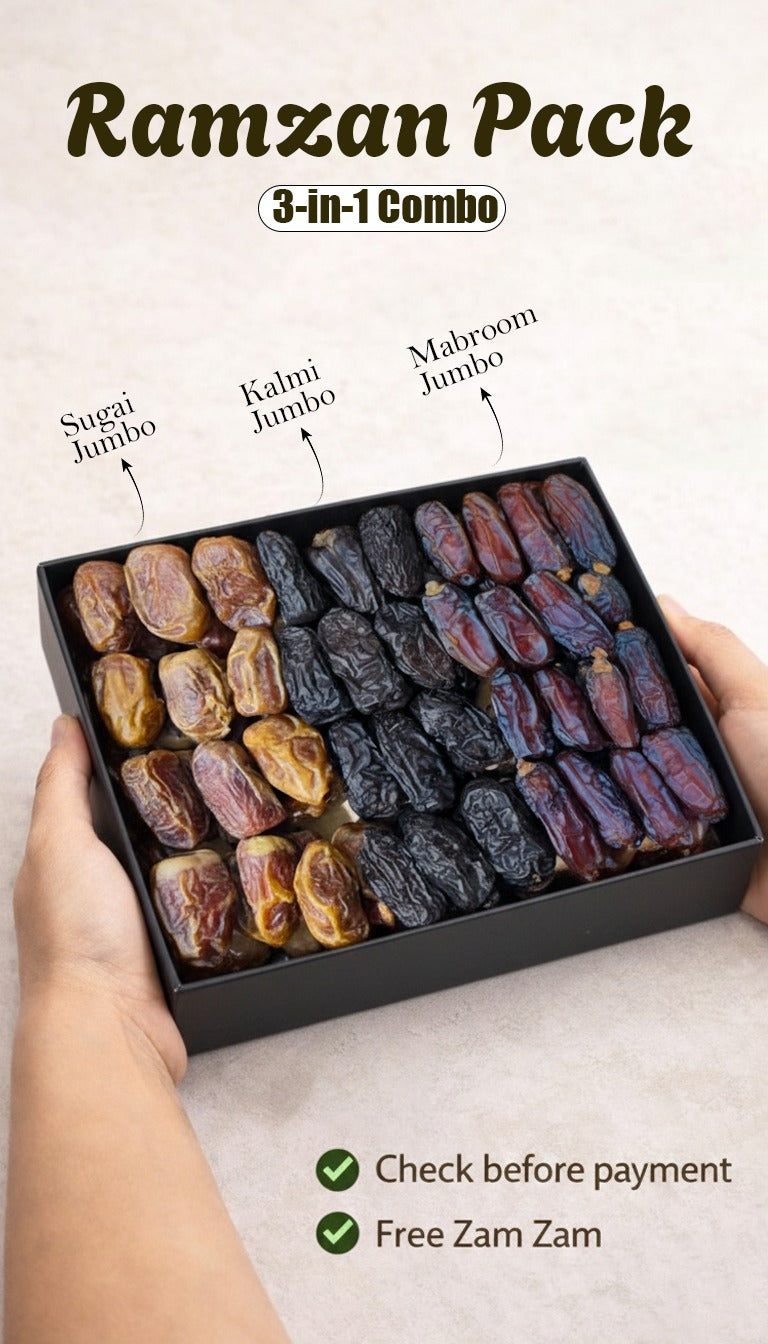Experience the richness of three premium Madina date varieties in one exclusive VIP box. This Special 3 in 1 Pack is carefully selected for families who want variety, taste, and quality in every bite.